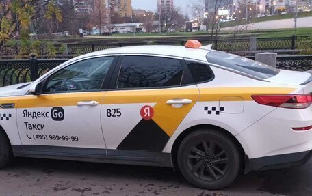 Автомобиль Kia Optima желтого цвета, год выпуска 2018 года, пробег 350 000 километров, имеет 3-х собственников по ПТС, двигатель объемом 2 литра (150 лошадиных сил) работает на бензине, коробка передач автоматическая, тип привода пе...