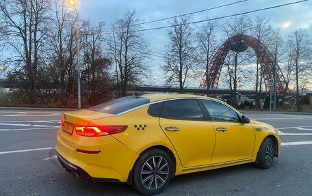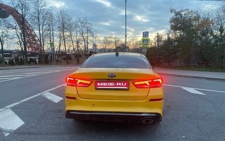 Автомобиль Kia Optima желтого цвета, год выпуска 2018 года, пробег 350 000 километров, имеет 3-х собственников по ПТС, двигатель объемом 2 литра (150 лошадиных сил) работает на бензине, коробка передач автоматическая, тип привода пе...