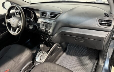 подогрев передних сидений, зоны стеклоочистителей, зеркал и рулевого колеса, а также электрорегулировка зеркал. Стальные диски, центральный замок и иммобилайзер обеспечивают надёжную защиту и практичность в эксплуатации. Обивка салона выполнена из ткани, а рулевое колесо и рычаг КПП отделаны кожей, что добавляет салону эстетическую привлекательность. Функция складывания спинки сиденья пассажира позволяет увеличить объём багажного отделения при необходимости, что полезно для перевозки крупногабаритных вещей. Kia Rio III