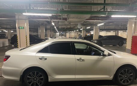 Продается Toyota Camry цвет белый перламутр, 2014 года выпуска с пробегом 186 000 километров, объем двигателя - 2,5 литра, мощность - 181 лс. Кожаный салон, мультимедиа, парктроники и камера заднего вида. Комплект колес лето R18, ко...